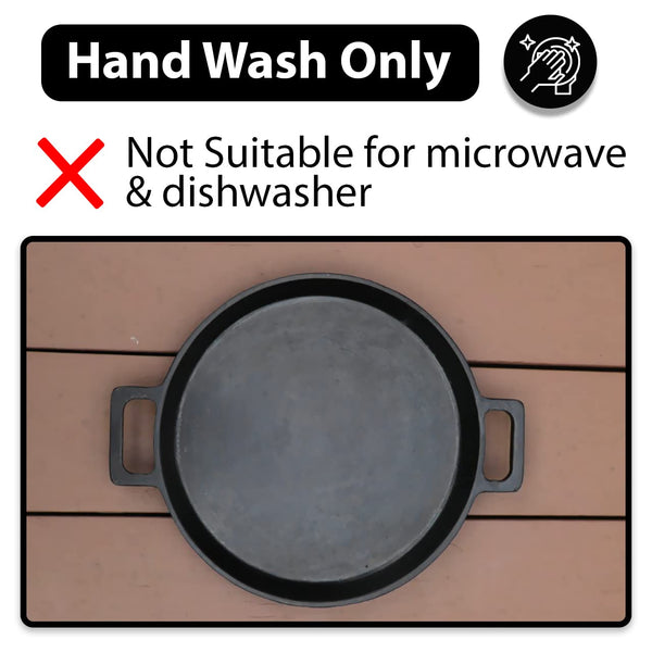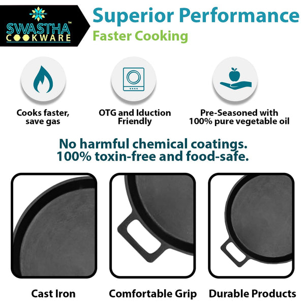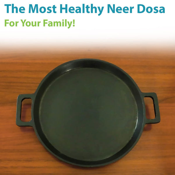 SWASTHA COOKWARE Cast Iron Material Neer Dosa Tawa Double Handle | Pre-Seasoned Super Smooth Cast Iron Neer Dosa Tawa | Black Color