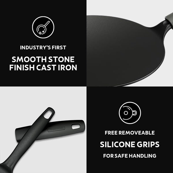 TRAMONTINA Titanex 26 cm Pre-Seasoned Cast Iron Roti Tawa – Non-Toxic, Easy Hold Non-Slip Heat-Resistant Grip, Superior Stone Finish, Excellent Heat Retention & Even Heating, Durable & Easy to Clean