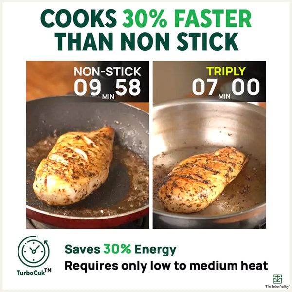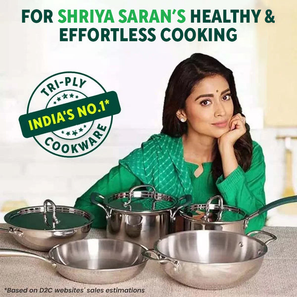 TurboCuk Tri-ply Stainless Steel Kadai+ Glass Lid, Premium Quality, 3 Layer Thick Body, 100% Toxin-free, Non-stick, Induction & Gas, 1.7/2.7/4L