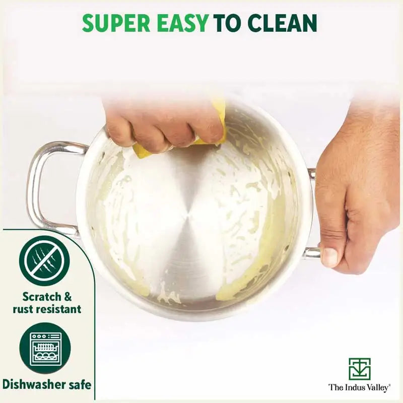 TurboCuk Tri-ply Stainless Steel Casserole/ Biryani Cooking Pot+ Steel Lid, Premium Quality, 3 Layer Thick Body, 100% Toxin-free, Non-stick, Induction & Gas, 3.1L