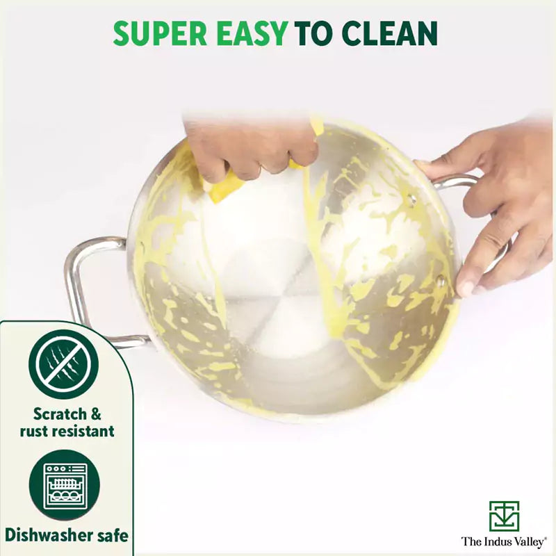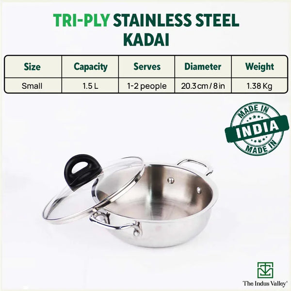 TurboCuk Tri-ply Stainless Steel Deep Fry Pan+ Glass Lid, Premium Quality, 3 Layer Thick Body, 100% Toxin-free, Non-stick, Induction & Gas, 20.3cm, 1.5 L, 1.38kg