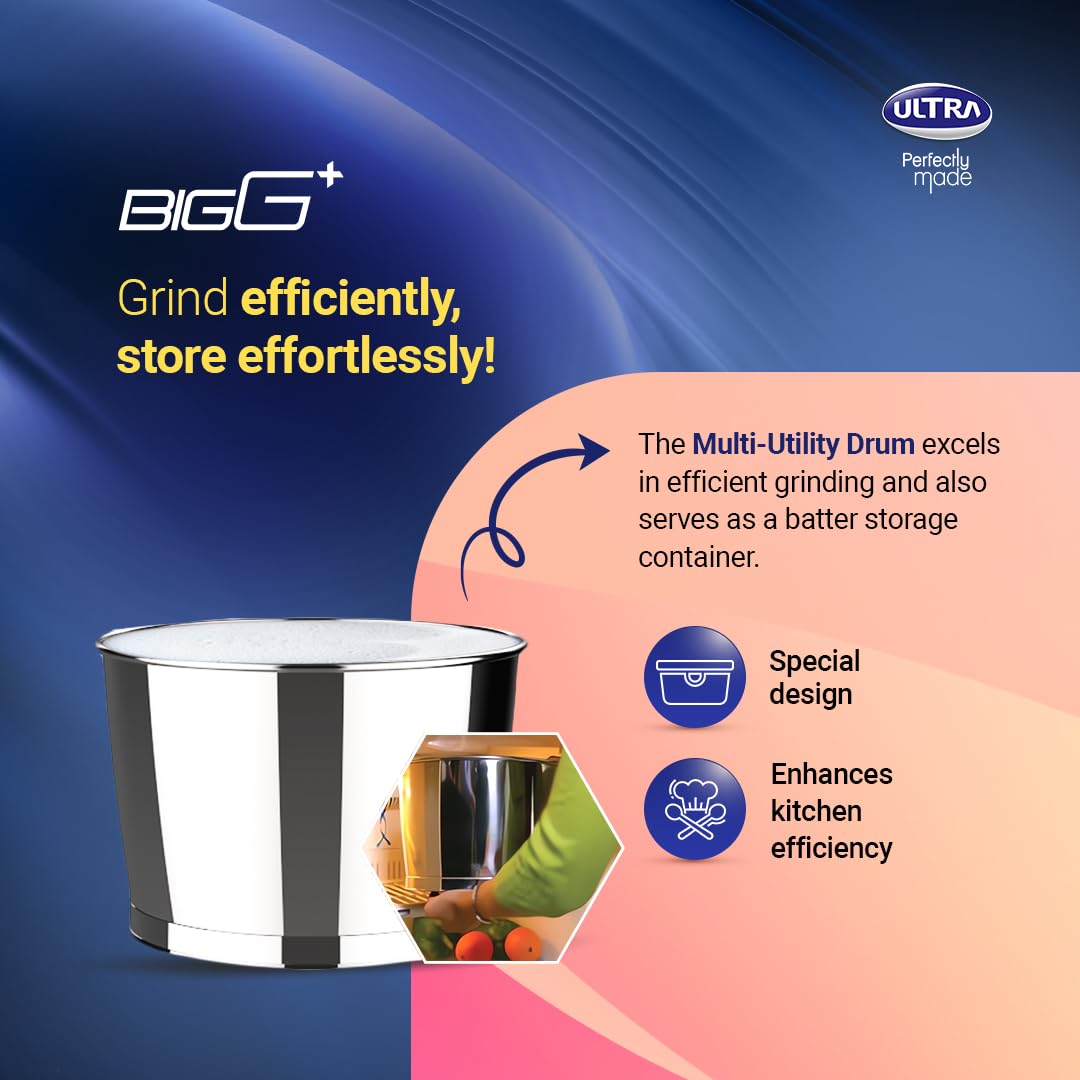 Ultra Stainless Steel Bigg+ 2.5L Wet Grinder (Blue)