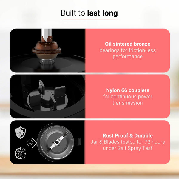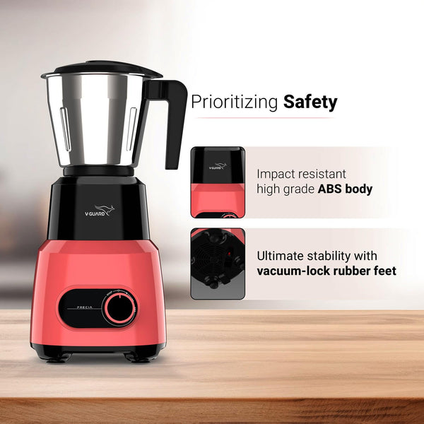 V-Guard Precia Mixer Grinder 500 Watt / 2 Year Motor Coverage by V-Guard / 3 Jar Mixie for Kitchen with Multifunctional SS Mixer Jars (Chutney, Dry, & Wet), Precision Stainless Steel Blades