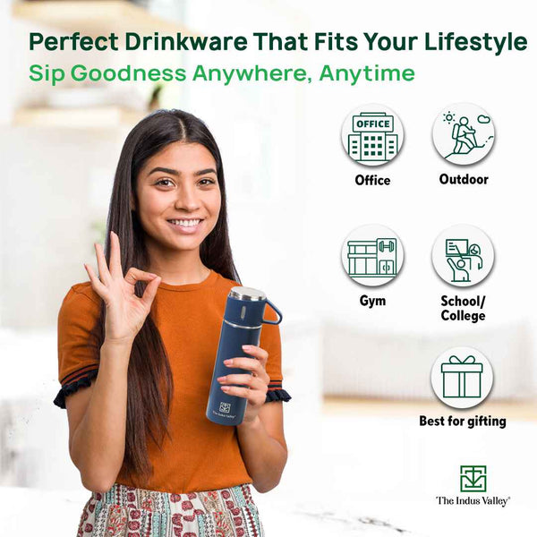 Pro-hydro Stainless Steel Vacuum Insulated Flask with Drinking Mug Lid, Hot & Cold Bottle, 500 ml