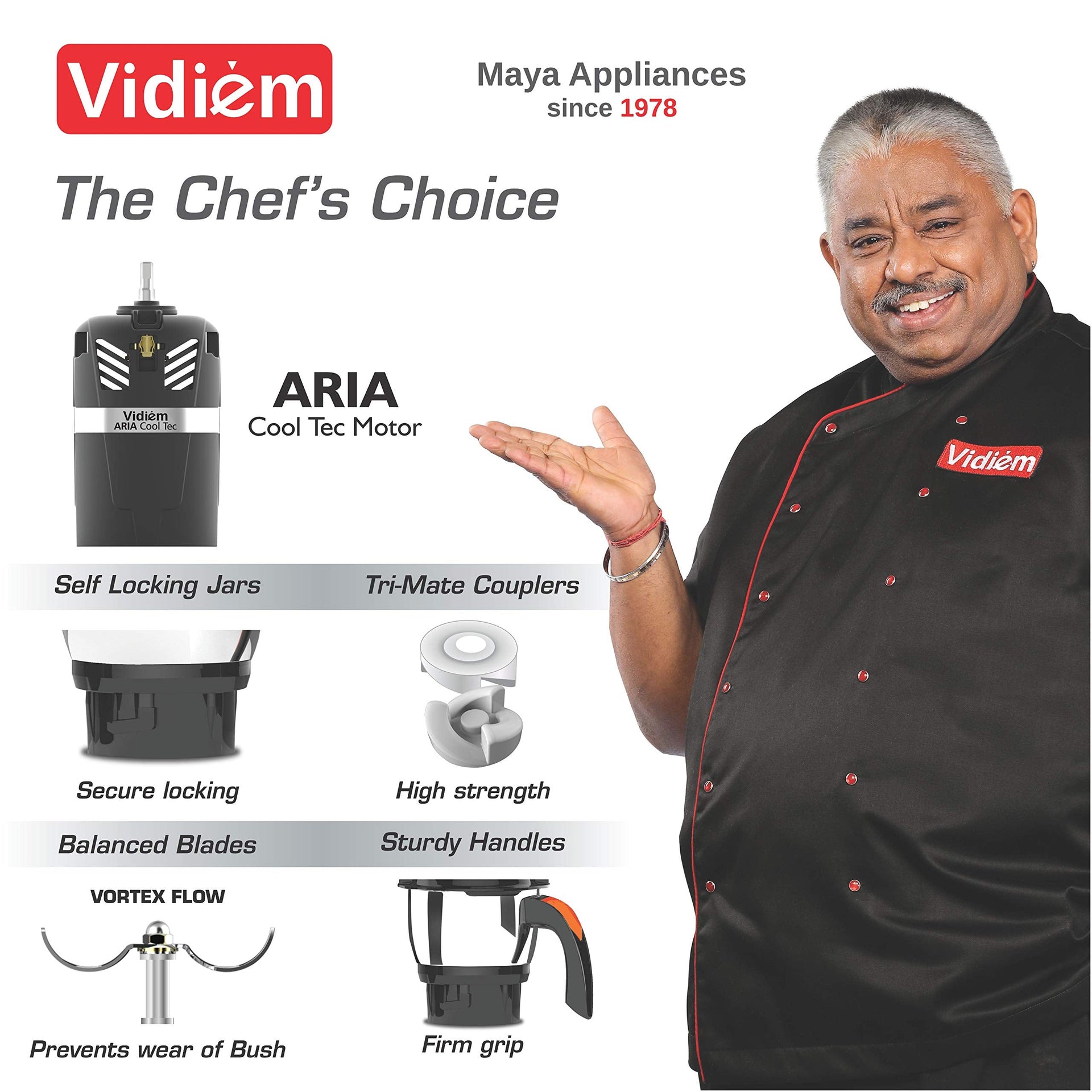 Vidiem Mixer Grinder 521 A (Grey with Orange) | Mixer grinder 750 watt with 3 Leakproof Jars with self-lock for wet & dry spices, chutneys & curries | 5 Years Warranty