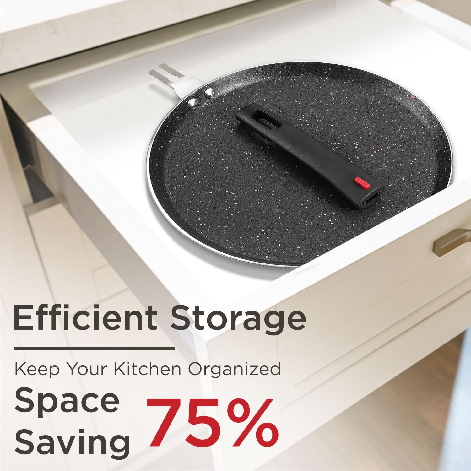 Vinod Popular Aluminium Non Stick Dosa Tawa with Detachable, Removeable Handles - 28 cm / 3 mm Thick/Compact Storage/Toxin Free/Long Lasting/Induction Base - 2 Year Warranty