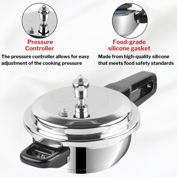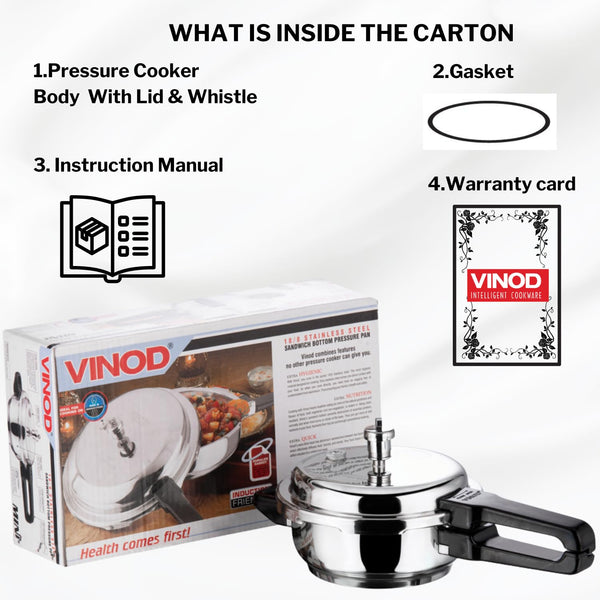 Vinod Stainless Steel Pressure Cooker 2 Litres | Also use as Deep Fry pan | Sandwich Bottom | Induction and Gas Stove Friendly | 2 Years Warranty | ISI and CE certified | Silver