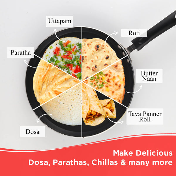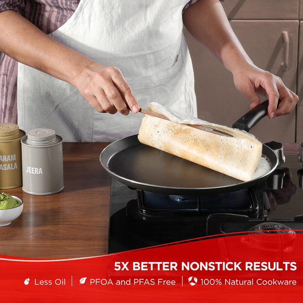 Vinod Zest Aluminium Non Stick Dosa tawa - 32 cm | Flat Bottom Tawa | 5 mm Extra Thick | 3 Layer Ceramic Coating | Metal Spoon Friendly | Gas Base - 2 Year Warranty