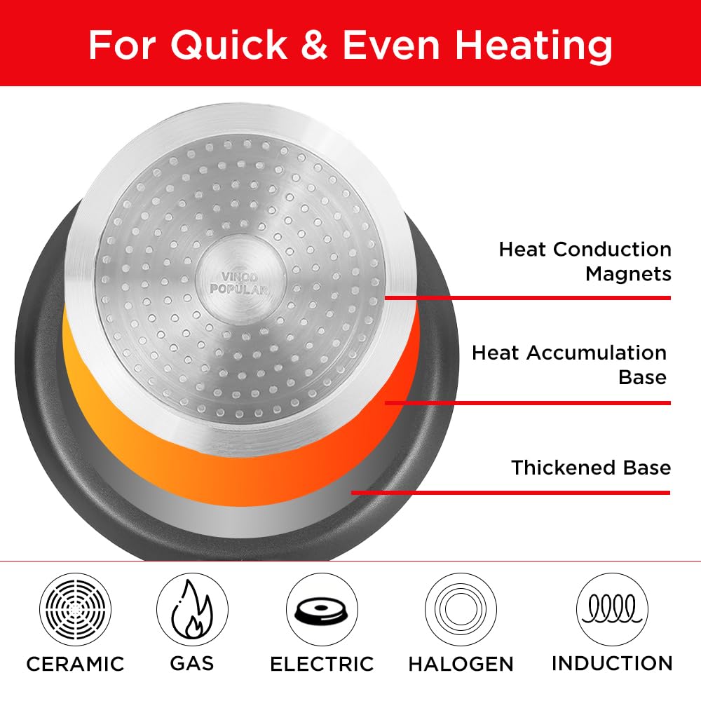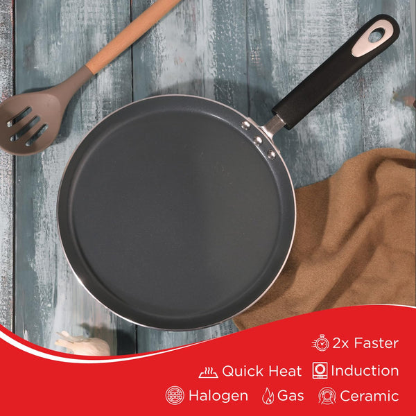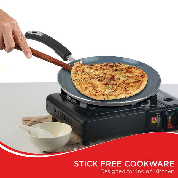 Vinod Zest Ceramica Dosa Tawa - 28 cm | Natural Stick Free Roti Tawa | Stylish Handle | Toxin Free | Induction and Gas Base | Scratch Resistant | 2 Year Warranty - Black
