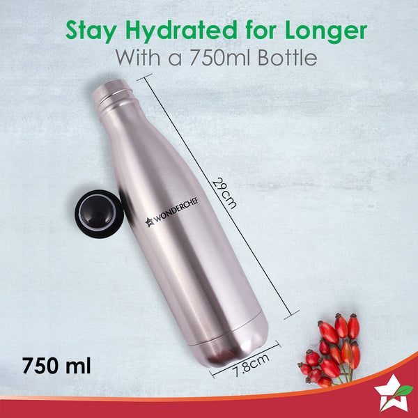 Aqua-Bot, 750ml, Double Wall Stainless Steel Vacuum Insulated Hot and Cold Flask, Spill & Leak Proof, Silver, 2 Years Warranty