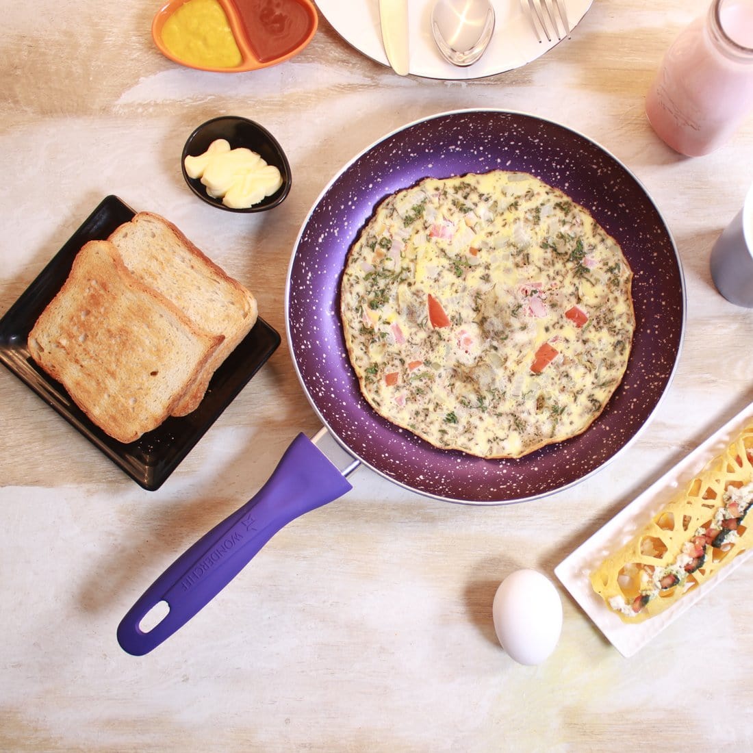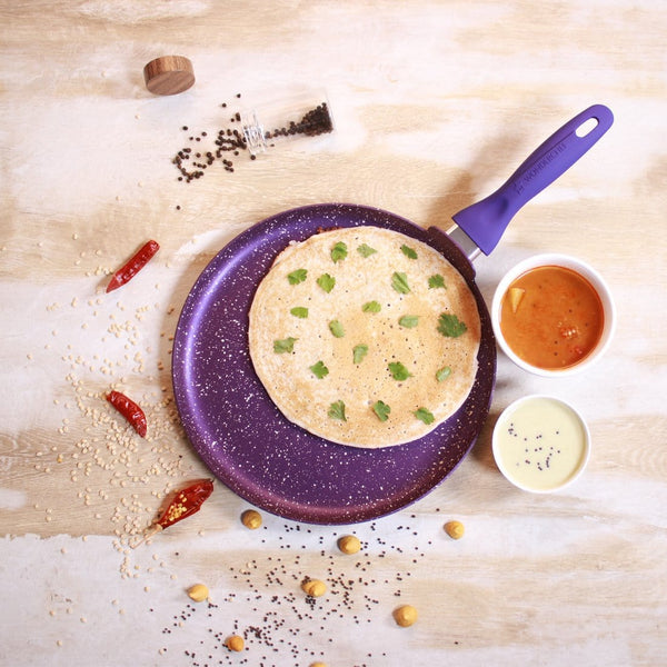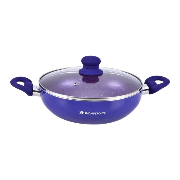 Blueberry Aluminium Non-Stick Cookware Set of 4 | Kadhai with Glass Lid 24cm, Fry Pan 24cm & Dosa Tawa 25cm | Induction Friendly Cookware | Soft Touch Handle | Pure Grade Aluminium | PFOA Free | 2 Year Warranty | Blue