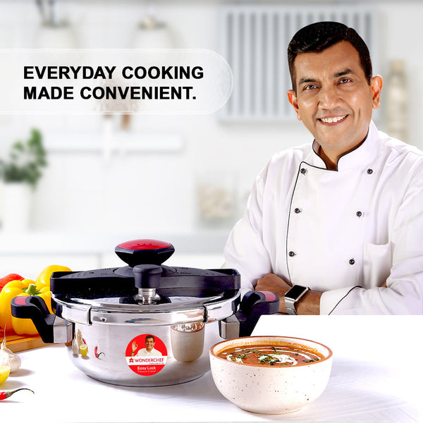 Easy Lock Stainless Steel 3L Outer Lid Pressure Cooker | Induction Compatible | Tri-Ply Bottom | 5-Year Warranty | Free Glass Lid | Silver