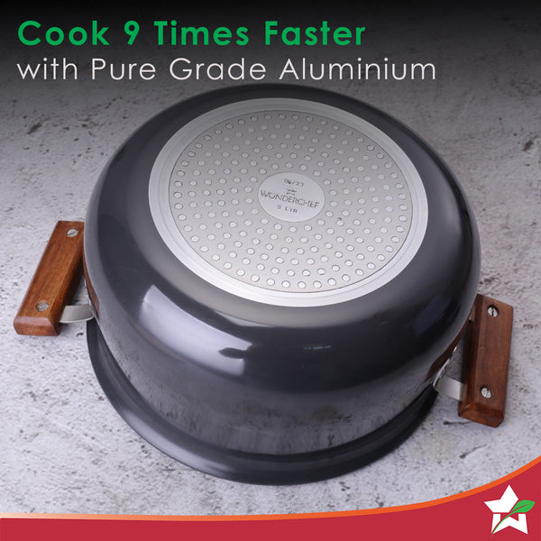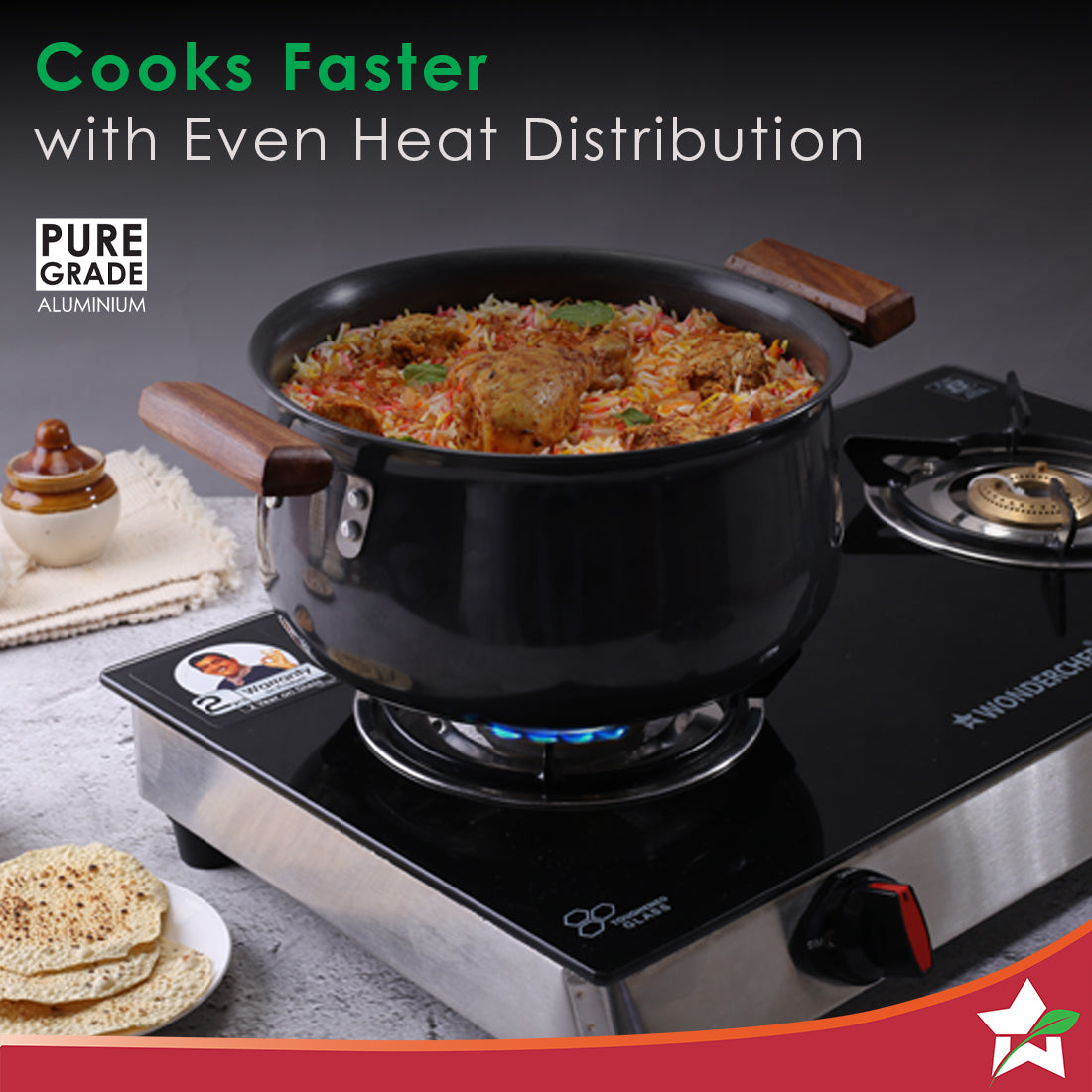 Ebony Hard Anodized Non-stick Biryani Handi with Lid - 5 L | Black