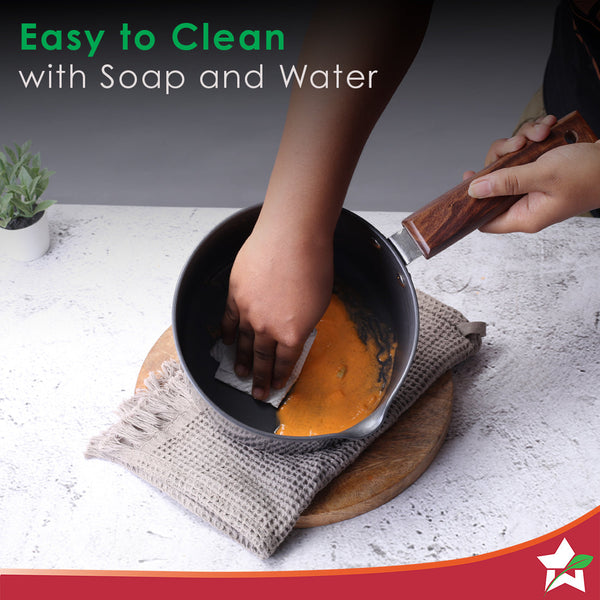 Ebony Hard Anodized 16 cm Nonstick Sauce Pan | Non Stick Sauce Pan | 2 L | 3.25 mm | Black and Brown