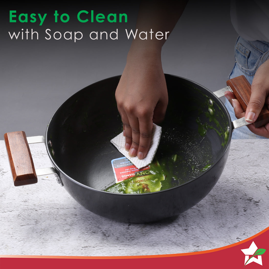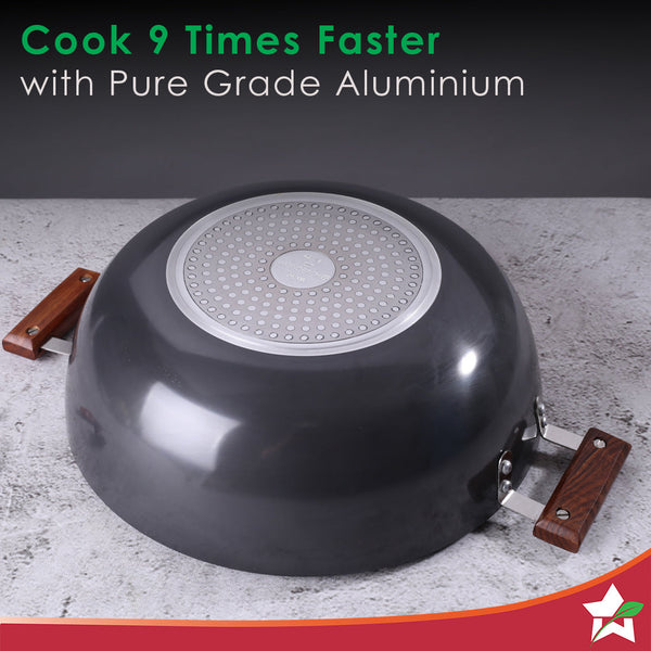 Ebony Hard Anodized 28 cm Wok with Lid | 4.5 Litre | Ideal for Biryani, Pulao| Black / Brown