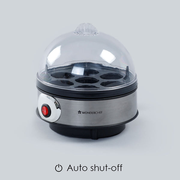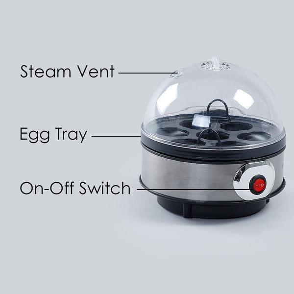 Instant Electric Egg Boiler with 7 Egg Poachers|3 Boiling Modes, Soft, Medium, Hard| Auto Shut Off Technology| Non-stick Egg Rack, Transparent Lid, Stainless Steel Body & Heating Plate, Steamer Rack| Alarm| Easy & Quick Operation| Black| 2 Year Warranty