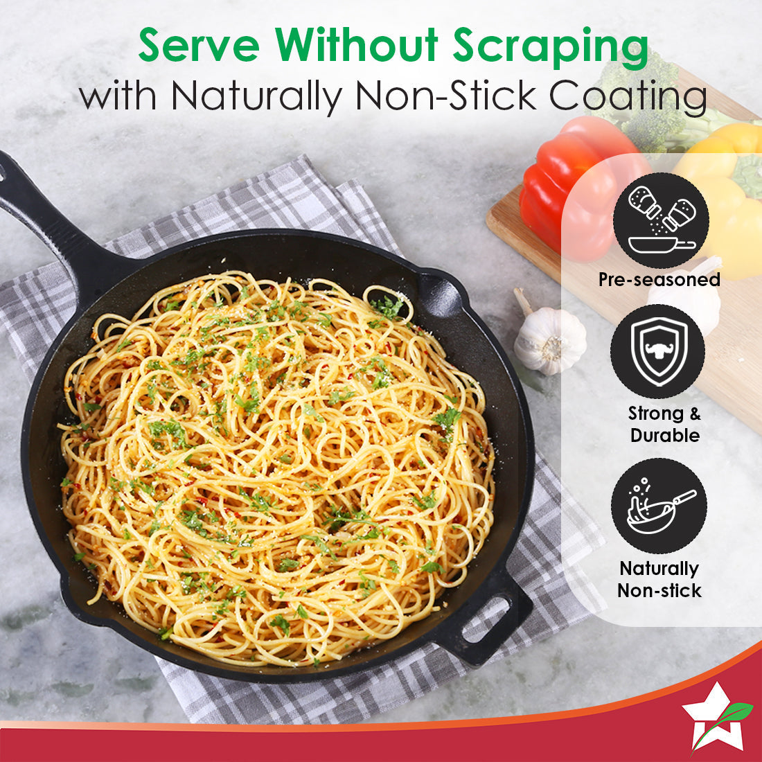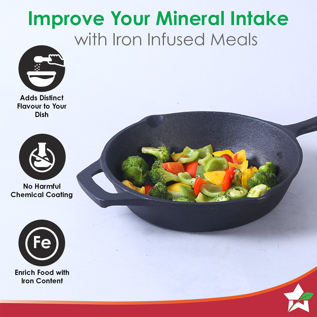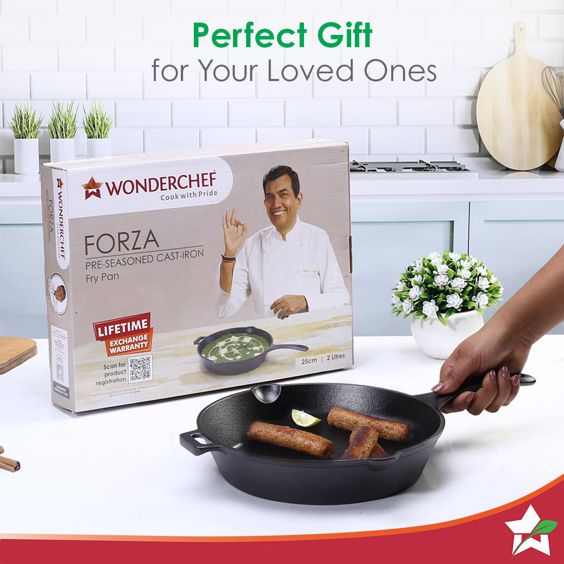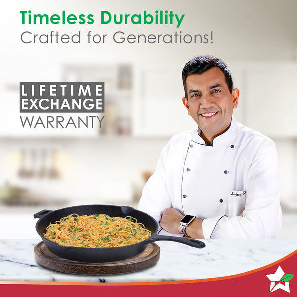 Forza Pre Seasoned 25 cm Cast Iron Fry Pan | With Lifetime Exchange Warranty | Black