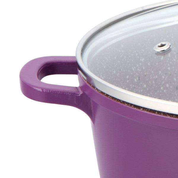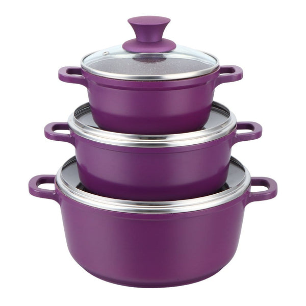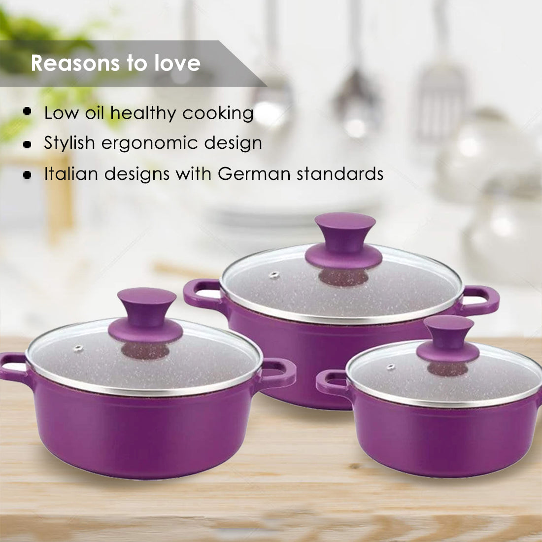 Granite Die-Cast Non-stick 6-piece Casserole Set with Lids, Induction bottom, Soft-touch handles, Virgin grade aluminium, PFOA/Heavy metals free, 3.5mm, 2 years warranty, Purple