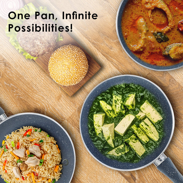 Granite Non Stick Fry Pan | Bakelite handles |Non – Toxic I Virgin Aluminium| 20 cms | 1 liter | 2 Year Warranty | Grey | Omelette Pan