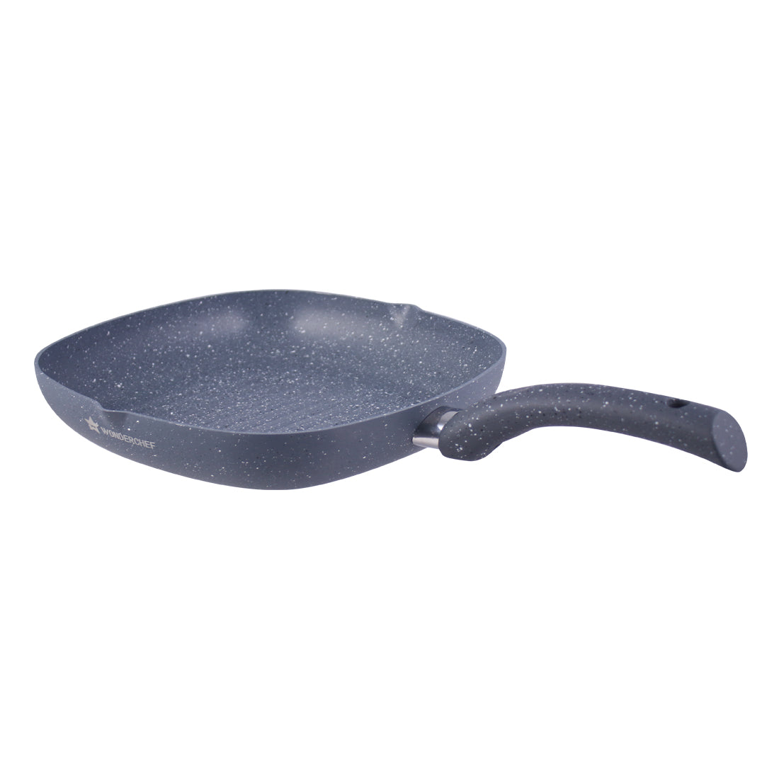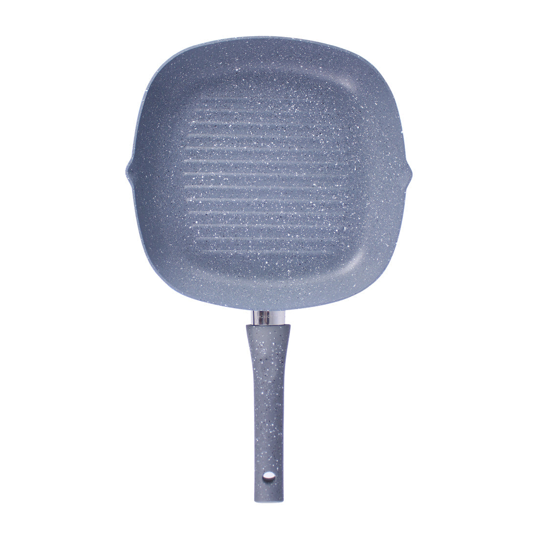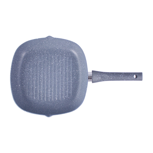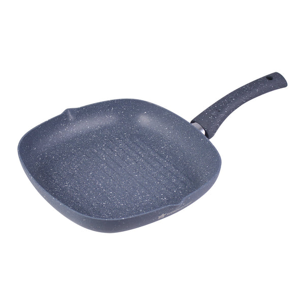 Granite 20 cm Non-Stick Grill Pan | Soft-Touch Handles | Virgin Grade Aluminium | PFOA & Heavy Metals Free | 3.5 mm thickness | Grill Pan Non-Stick | 1.35 liters | 2 Years Warranty | Grey