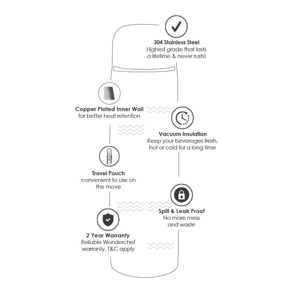 Hot-Bot, 1000ml, Double Wall Stainless Steel Vacuum Insulated Hot and Cold Flask with Travel Pouch, Copper Plated Inner Wall, Spill & Leak Proof, 2 Years Warranty