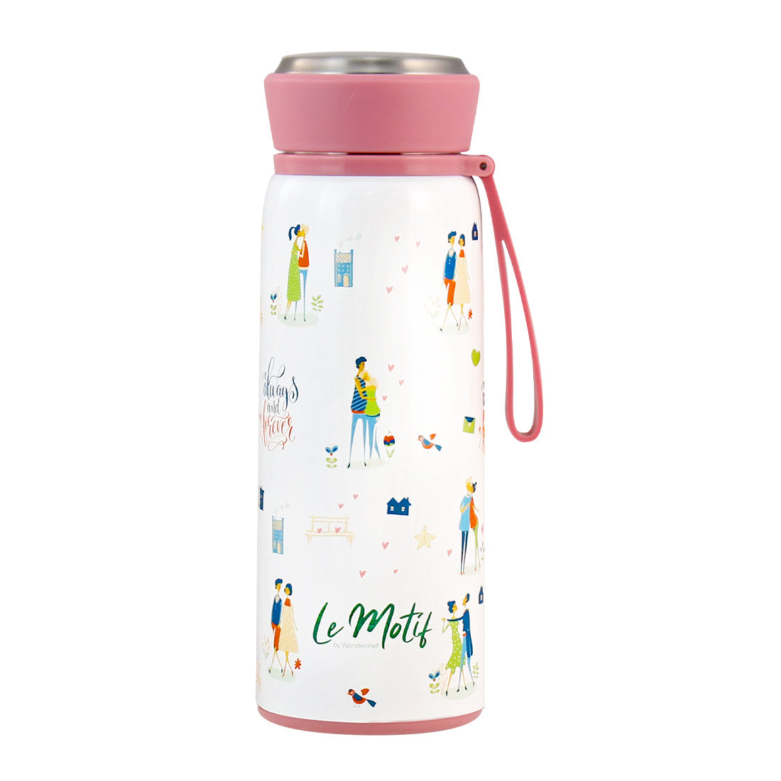 Le Motif L'amour, 420ml, Stainless Steel Double wall Water Bottle, 3D Embossed Design, Spill & Leak Proof, 2 Years Warranty