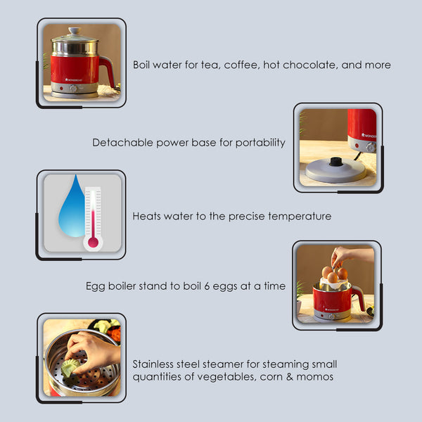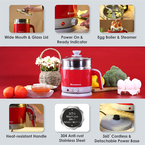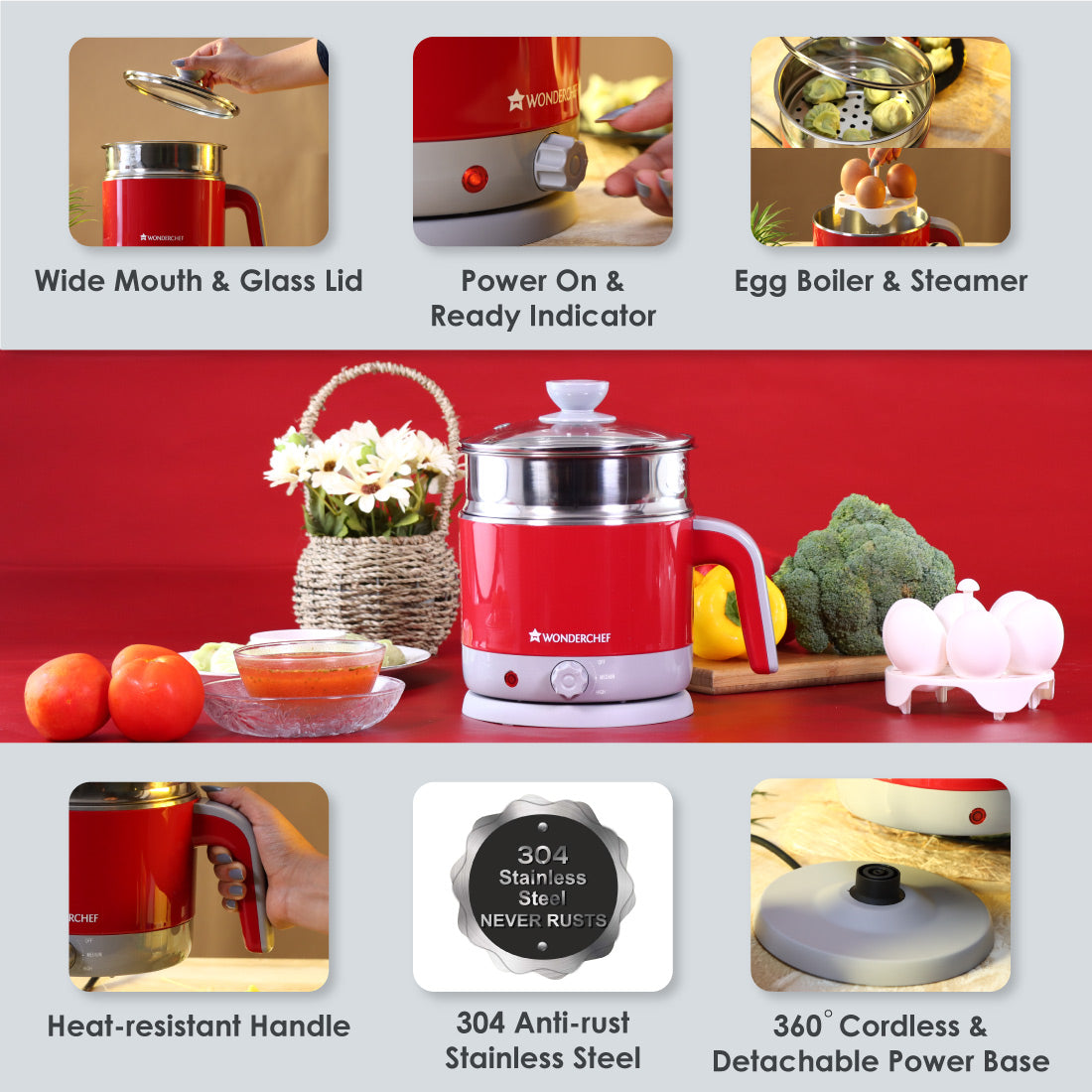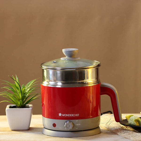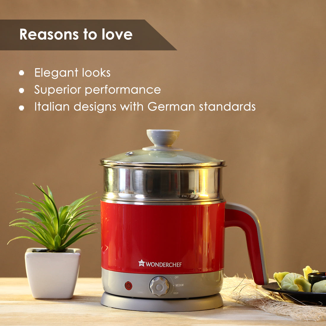 LUXE Multicook Stainless Steel 1.2 L Electric Kettle, 1000W, Red