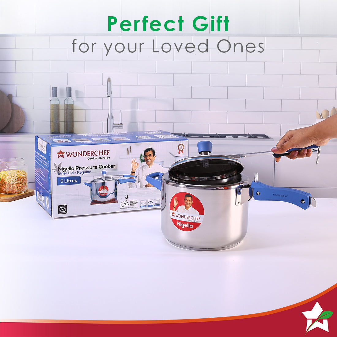 Nigella Inner Lid 5L Stainless Steel Pressure cooker, Gas Stove & Induction Friendly, Silver, 5 year warranty , ISI Certified