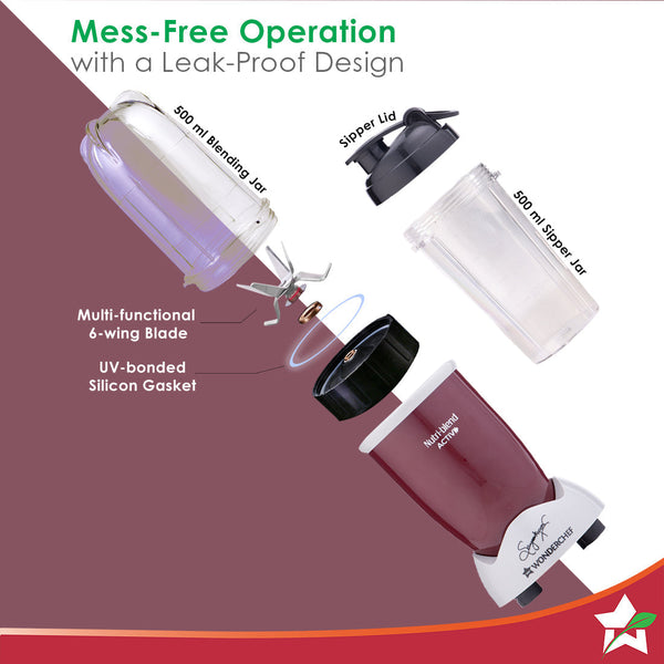 Nutri-blend Activ Mixer Grinder Blender, Smoothie Maker, 500W 22000 RPM 100% Full Copper Motor, 2 Unbreakable BPA Free Jars, SS Blades, 2 Year Warranty, Recipe book by Chef Sanjeev Kapoor, Red