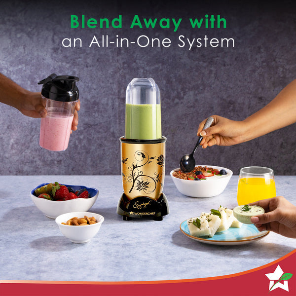 Nutri-blend, 500W, 22000 RPM 100% Full Copper Motor, Mixer-Grinder, Blender, SS Blades, 2 unbreakable Jars, 2 Years warranty, Champagne, Recipe book by Chef Sanjeev Kapoor