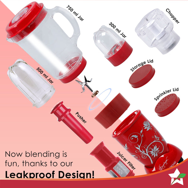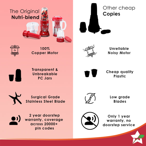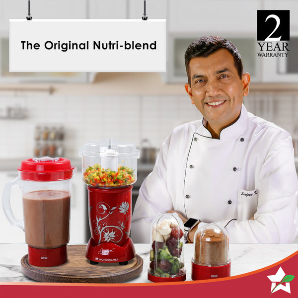 Nutri-blend Juicer, Mixer, Grinder, Smoothie Maker & Chopper | Complete Kitchen Machine | 22000 RPM Blender, Chopper, Juicer | 500W 100% Full Copper Motor | SS Blades | 4 Unbreakable Jars | 2 Years Warranty | Recipe Book By Chef Sanjeev Kapoor | Red