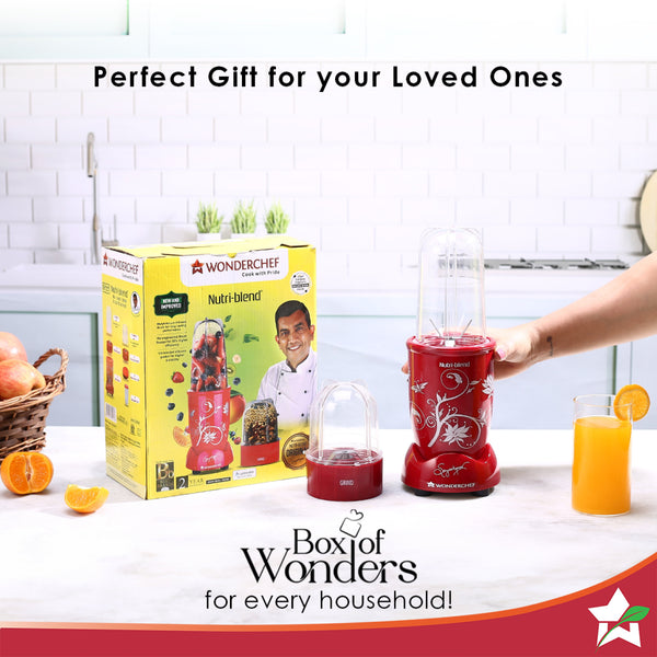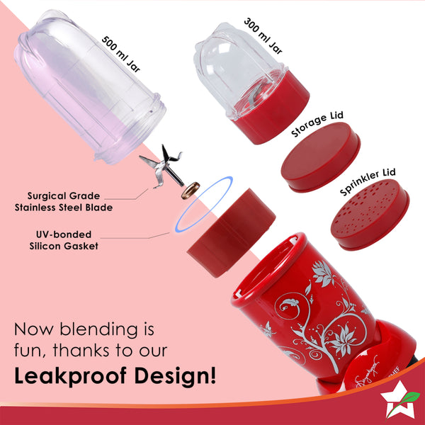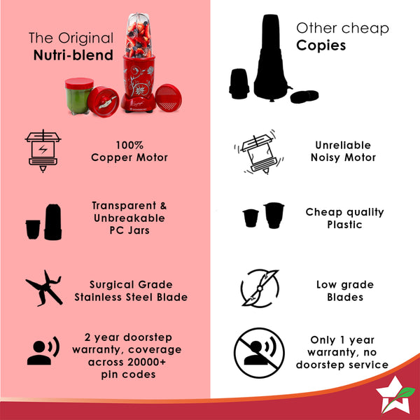 Nutri-blend, 500W, 22000 RPM 100% Full Copper Motor, Mixer-Grinder, Blender, SS Blades, 2 Unbreakable Jars, 2 Years warranty, Red, Recipe Book By Chef Sanjeev Kapoor