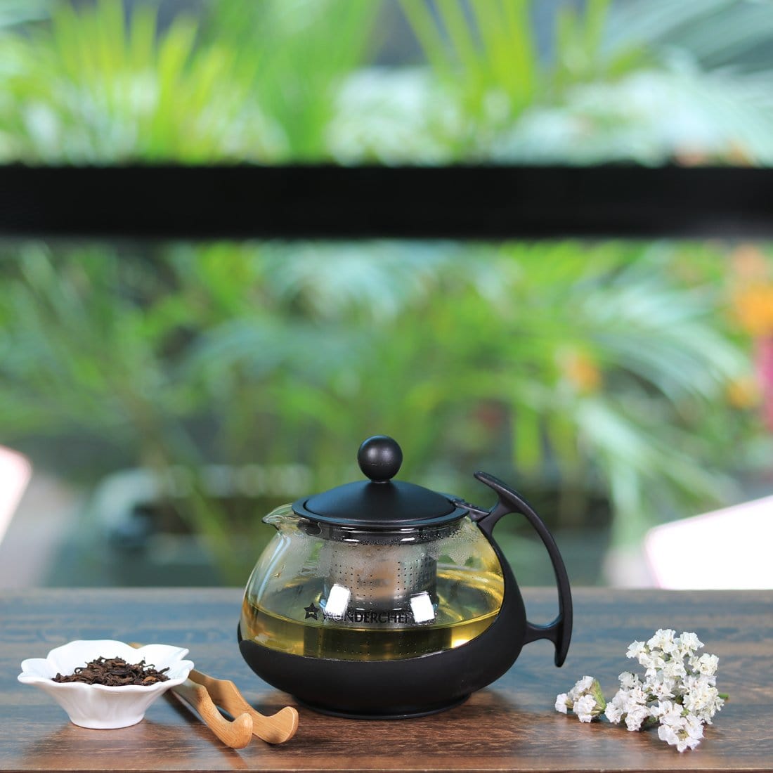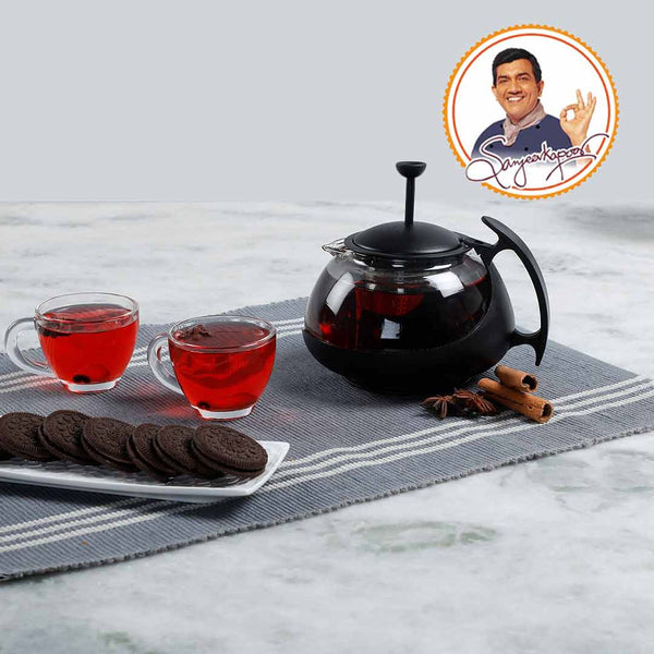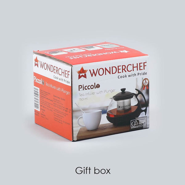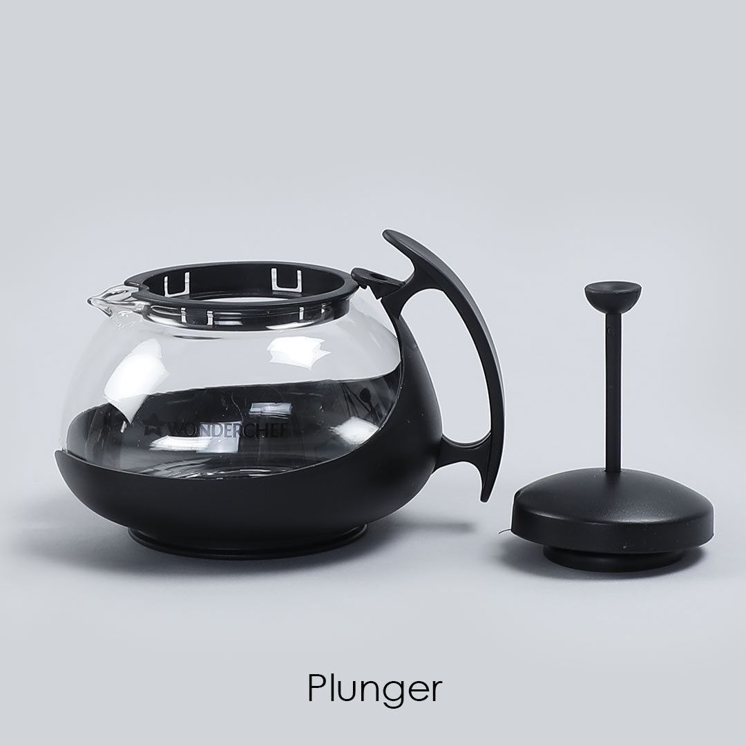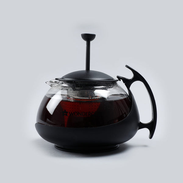 Piccolo Glass Tea Infuser with Plunger, 750ml, Black, Stainless Steel Mesh Filter