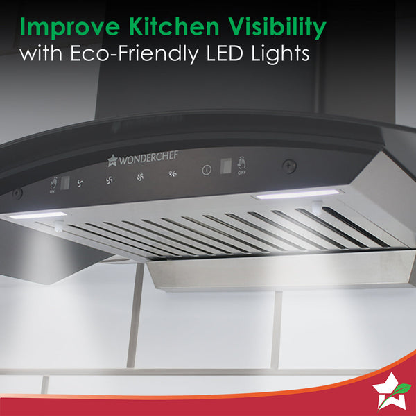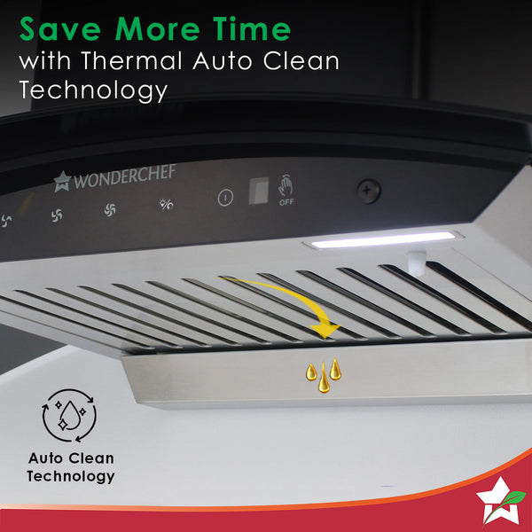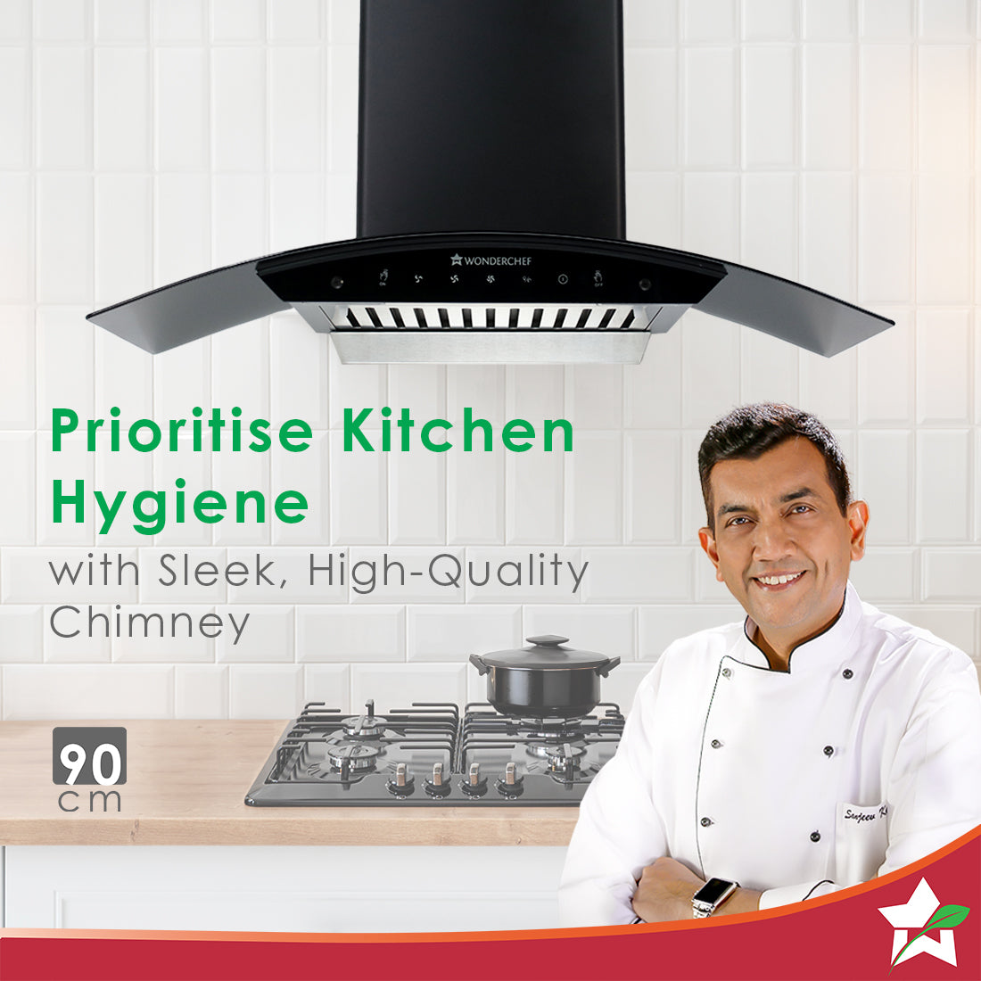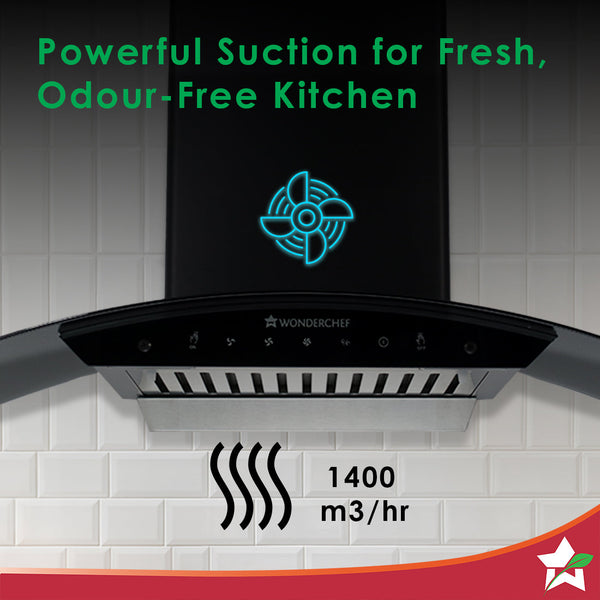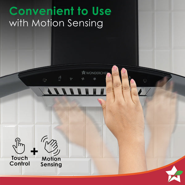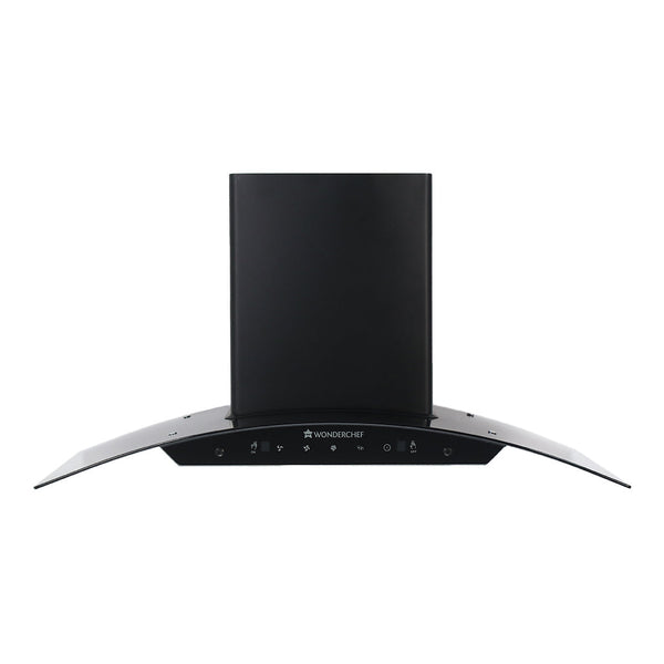 Power Curve Wall-Mount Chimney| Auto Clean Function| 1200M3/H | Suction Capacity| 3 Speed Motion| Gesture and Touch Control| Oil Collector| Low Noise| 90cms | Stainless Steel Baffle Filter|Black