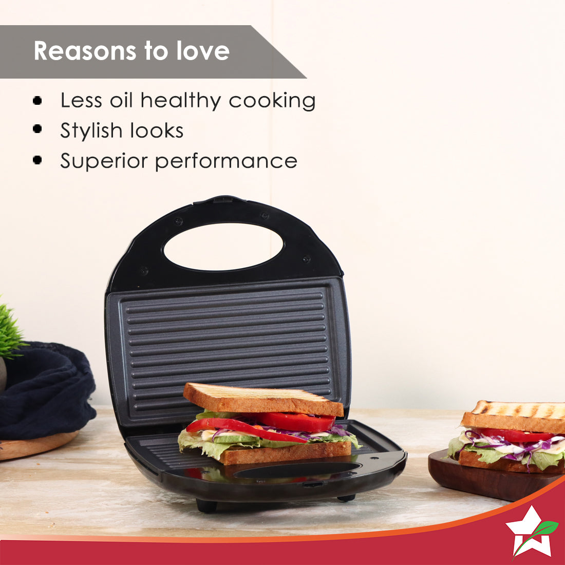 Prato Non-Stick Electric Griller, Sandwich Maker, Toaster |700 Watt| Auto Temp LED indicator| Non-stick Coated Plates, Cool Touch Handle, Buckle Clip Lock| Grill Sandwiches, Bread, Kebabs, Panner Tikki and Quesadilla| | Oil Free Toasting| 1 Year Warranty