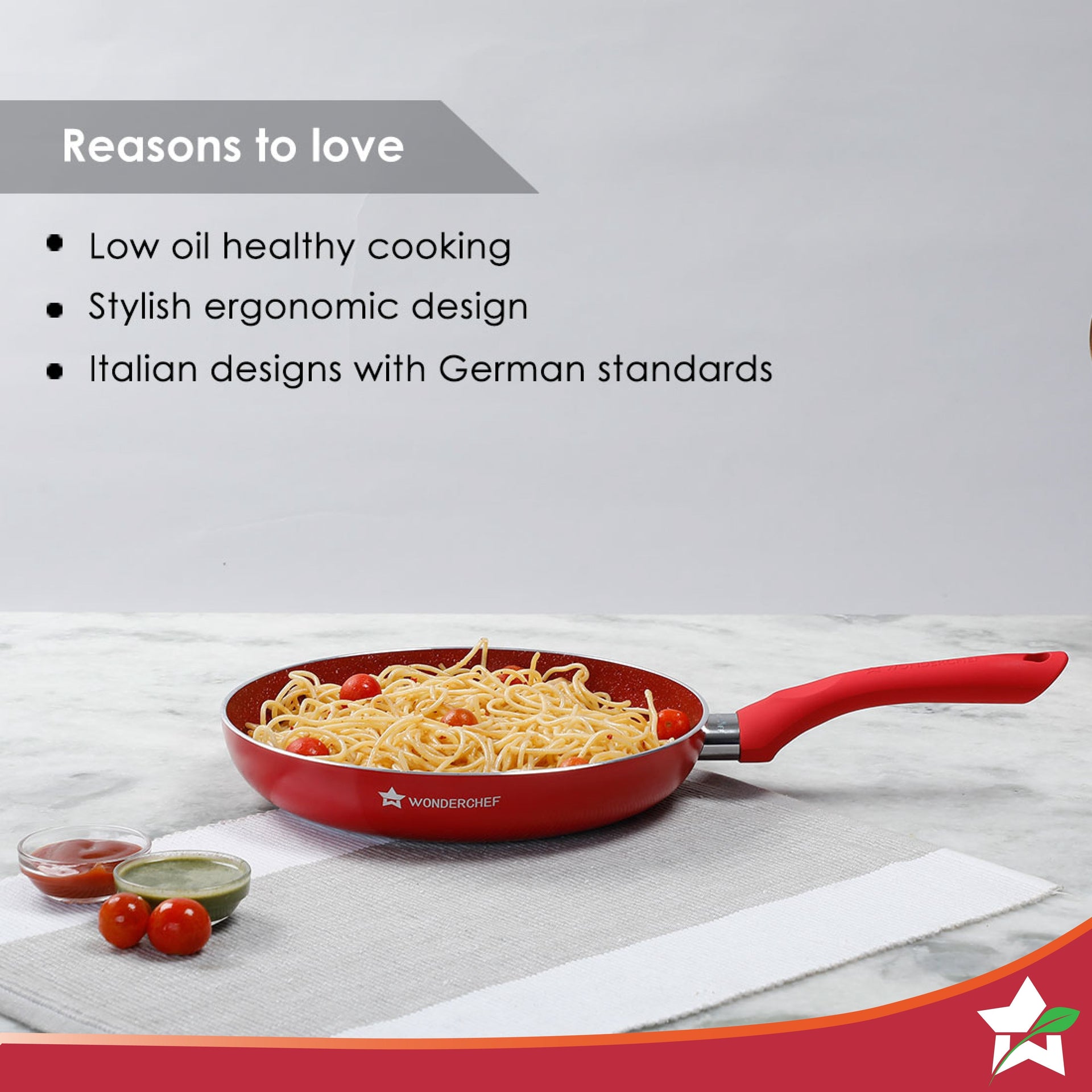 Royal Velvet 24 cm Non-Stick Fry Pan | Induction Bottom | Soft-Touch Handle | Virgin Grade Aluminium | PFOA & Heavy Metals Free | 3 mm | 1.8 litres | 2 Years Warranty | Red