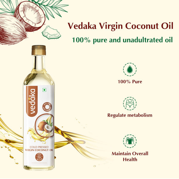 Amazon Brand - Vedaka Cold Pressed Virgin Coconut Oil 1 L Bottle | 100% Pure | Effective with Good Smell