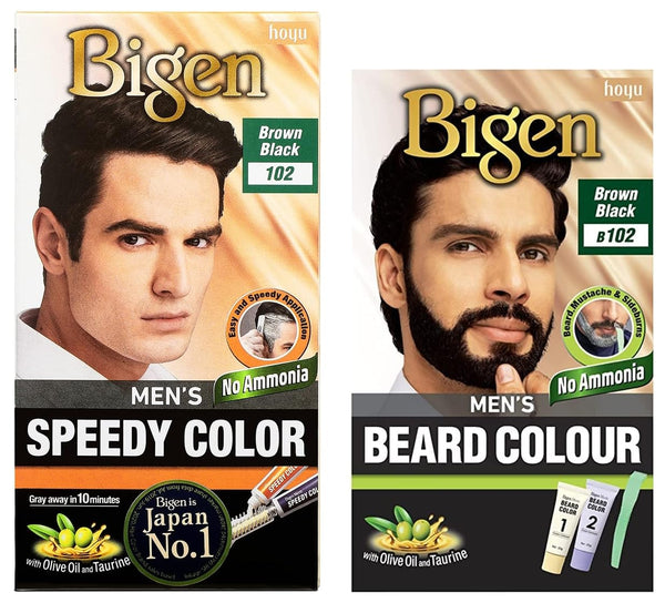 Bigen Men's Beard Color, Brownish Black B102, 40g & Bigen Men's Speedy Color, Brown Black 102, 80g