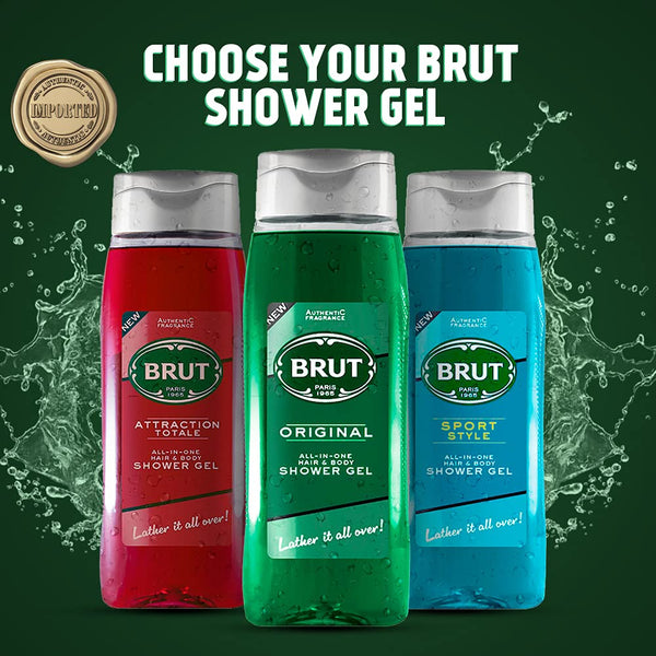 2x Brut Original ALL-IN-ONE Shower gel for Hair & Body | Body Wash for Men| Authentic Fragrance 500ml each - Pack of 2