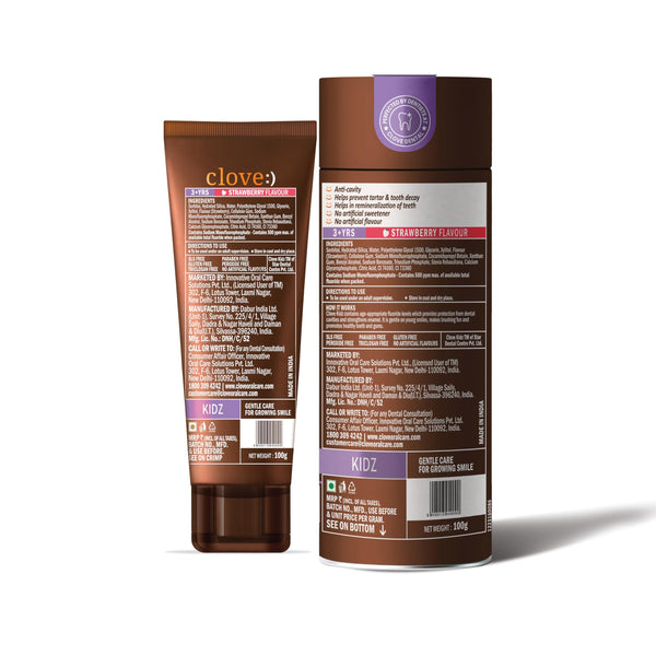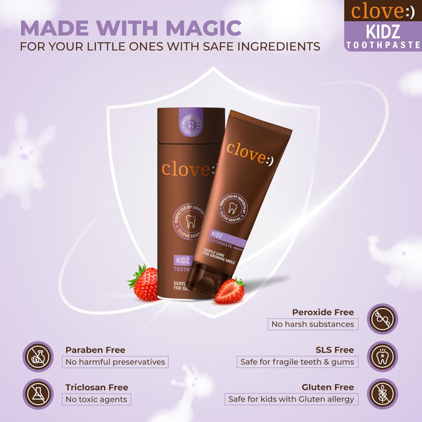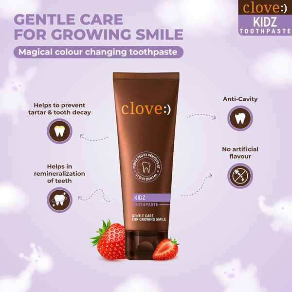 Clove Kids Toothpaste (3+years) Natural Strawberry Flavour | Color Changing | Cavity protection | SLS Free | Triclosan Free | Paraben Free | Peroxide free |Gluten free | No artificial Flavours 100g