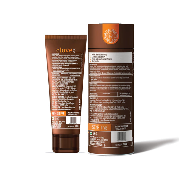 Clove Sensitive Toothpaste | reduce Senstivity | Dual Action toothpaste For Sensitivty & Bad Breath | Strengthens Enamel | Triclosan Free | Paraben Free | Peroxide free | Mint, Pack of 1 (100g)