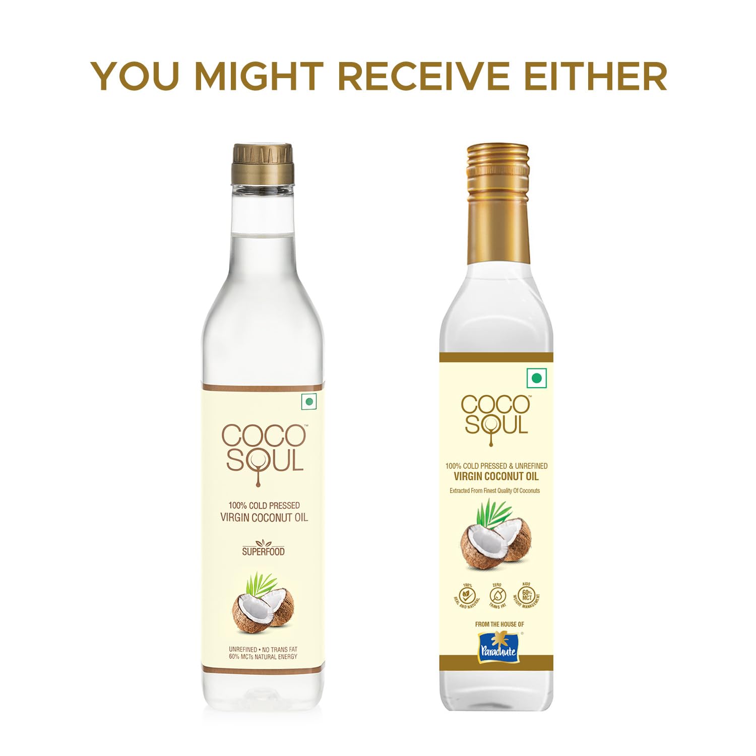 Coco Soul Cold Pressed Unrefined Virgin Coconut Oil | 60% MCT | Multipurpose Usage | Daily Cooking| Keto Friendly | Naturally Cholesterol Free | A1 grade real coconut | From Makers of Parachute 500 ml