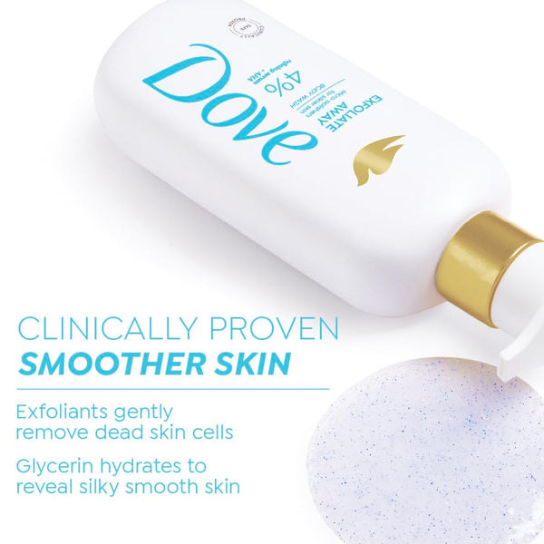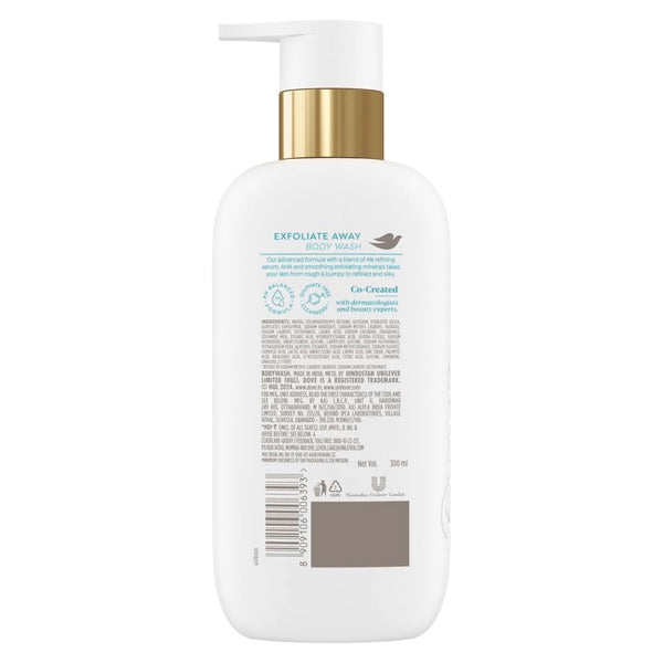 Dove Exfoliate Away Serum Body Wash | 4% Refining Serum + AHA | Micro-polishers for silkier skin | Paraben & SLS free | 300 ml