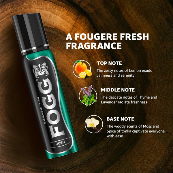 4x Fogg Rush No Gas Deodorant for Men, Long-Lasting Perfume Body Spray, 150 ml each - Pack of 4