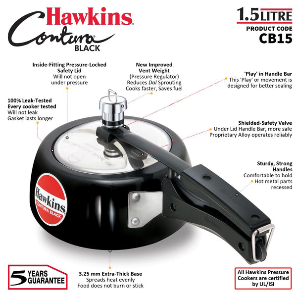 Hawkins Contura Black 1.5 litre Pressure Cooker