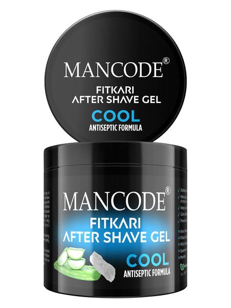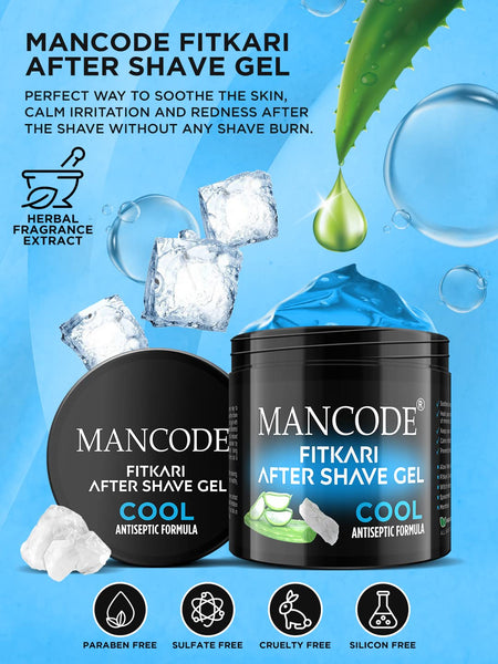 Mancode Fitkari After Shave Gel Cool for Men | Post Shave Gel | Treats Aftershave Cuts; Wounds; Razor Burn | Skin Irritation | Refreshing Aqua Fragrance | Alcohol Free After Shave 100gm (Pack of 1)