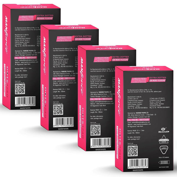 Manforce Extra Dotted Condoms, Litchi Flavoured- 10 Pieces (Pack of 4)