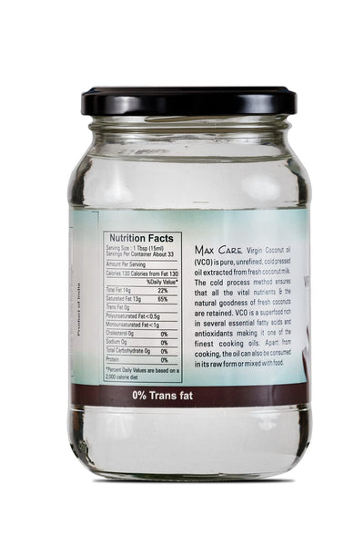 Max Care Virgin Coconut Oil (Cold Pressed) 500Ml Glass Jar