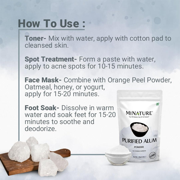 minature Purified Fitkari Alum powder (phitkari) for Skin Care |Water Purify| Pure Alum powder |Cruelty Free (100gm)