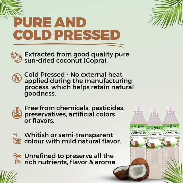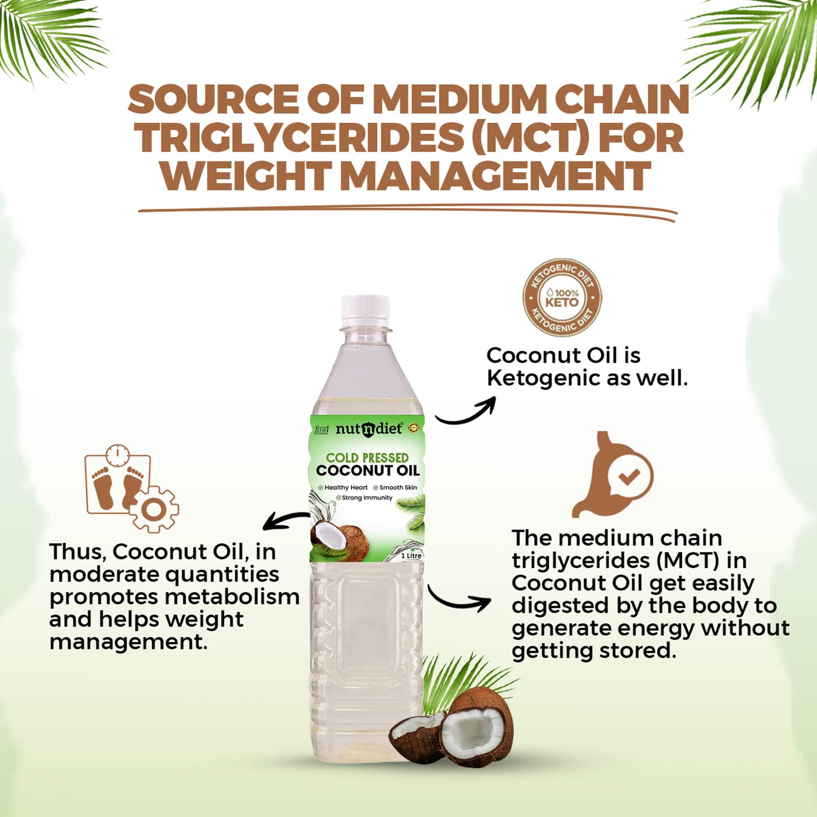 nutndiet Cold Pressed Coconut Oil 5 Litre Can | Pure, Natural & Chemical-Free | Multipurpose Oil for Cooking, Skin Care, Hair Care & Massage | Rich in Nutrients & Antioxidants